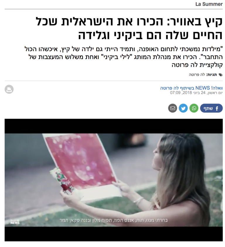 צעד ענק ללילי ביקיני, כתבה בxnet מאת איתי יעקב על הקמת המותג, הדרך שעבר וההשפעות השונות, כולל מה שהוביל אותי לפתוח את המותג, ההשפעה של סבתא שלי על הרוח העיצובית ועוד.
